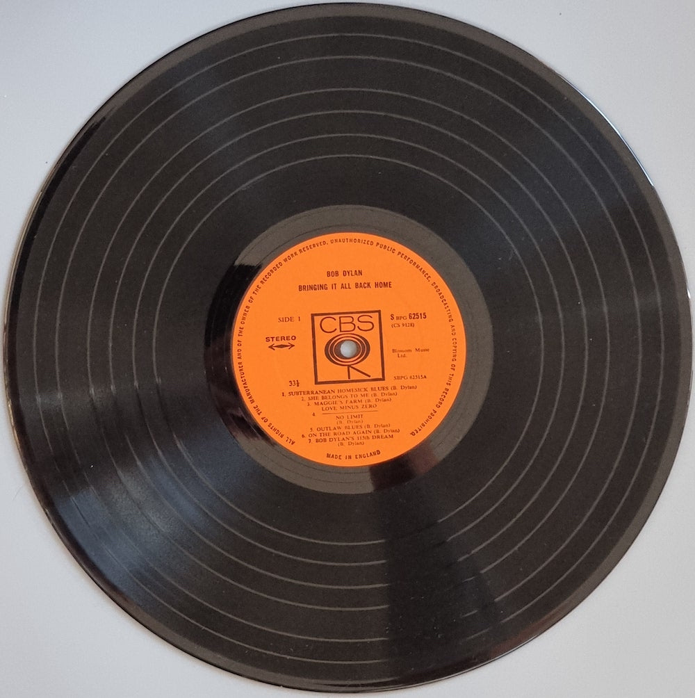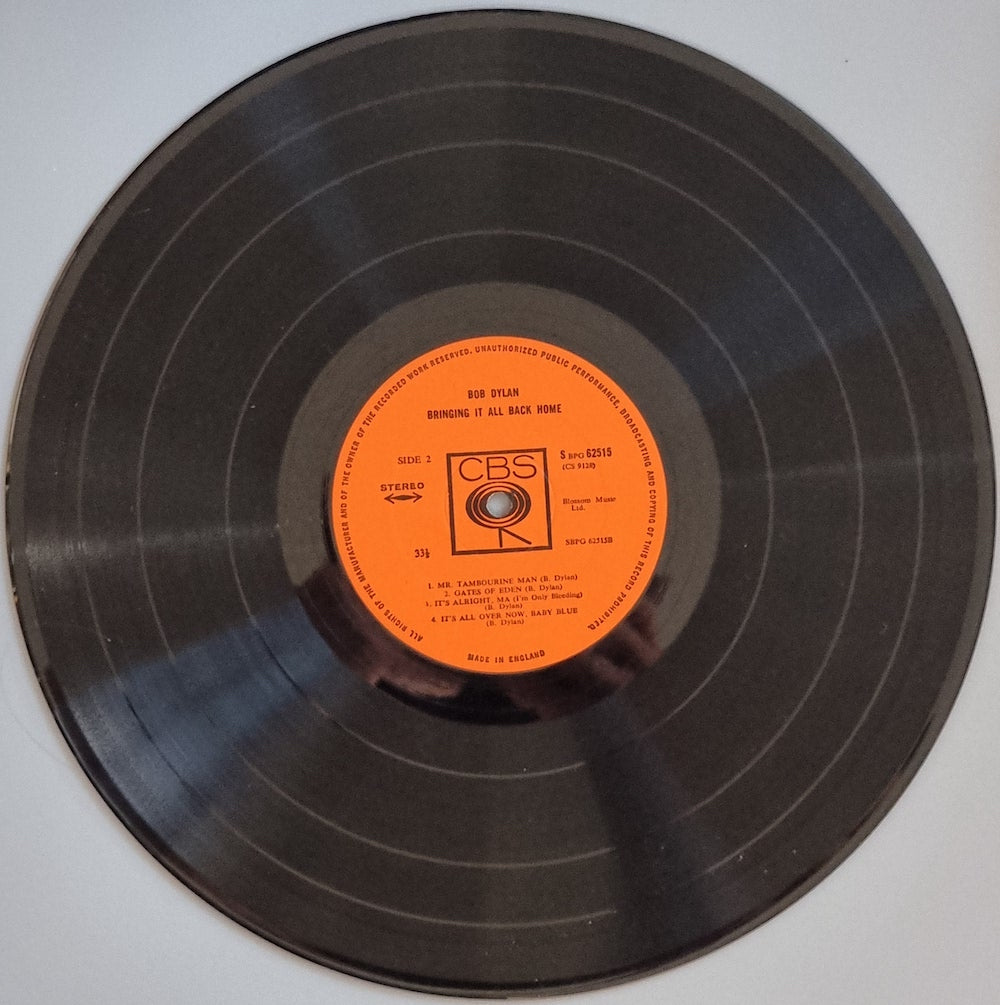 Also titled 'Subteranean Homesick Blues' in some countries, this was the album that first used extensive use of electric guitar and, while causing controversy among his folk contempories, effectively launched the Folk Rock era. Includes the Dylan classics 'Mr. Tambourine Man', 'Maggies Farm', 'Its Alright Ma' and 'Its All Over Now Baby Blue' (actually all the others are classics!). A seminal and in the all time top 100 album in very good condition.